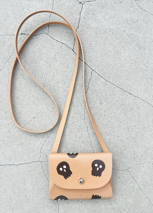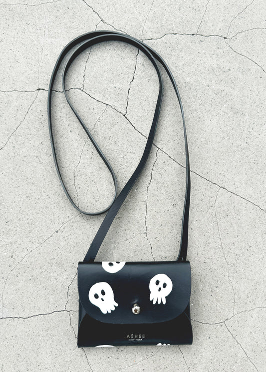 SKULL card holder wallet with Shoulder strap - Raspberry Red