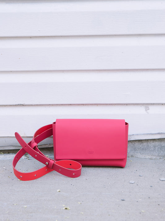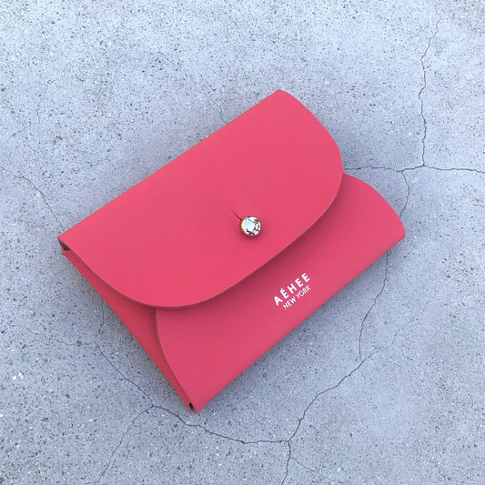 BOW card holder wallet with Shoulder strap - Raspberry Red