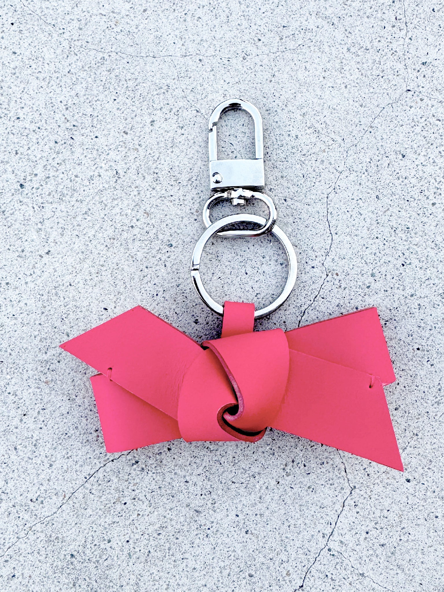 Each bow is carefully handcrafted in our New York studio, ensuring every piece is truly one of a kind. This unique keychain features a durable snap-hook and ring, combining functionality with elegant design.