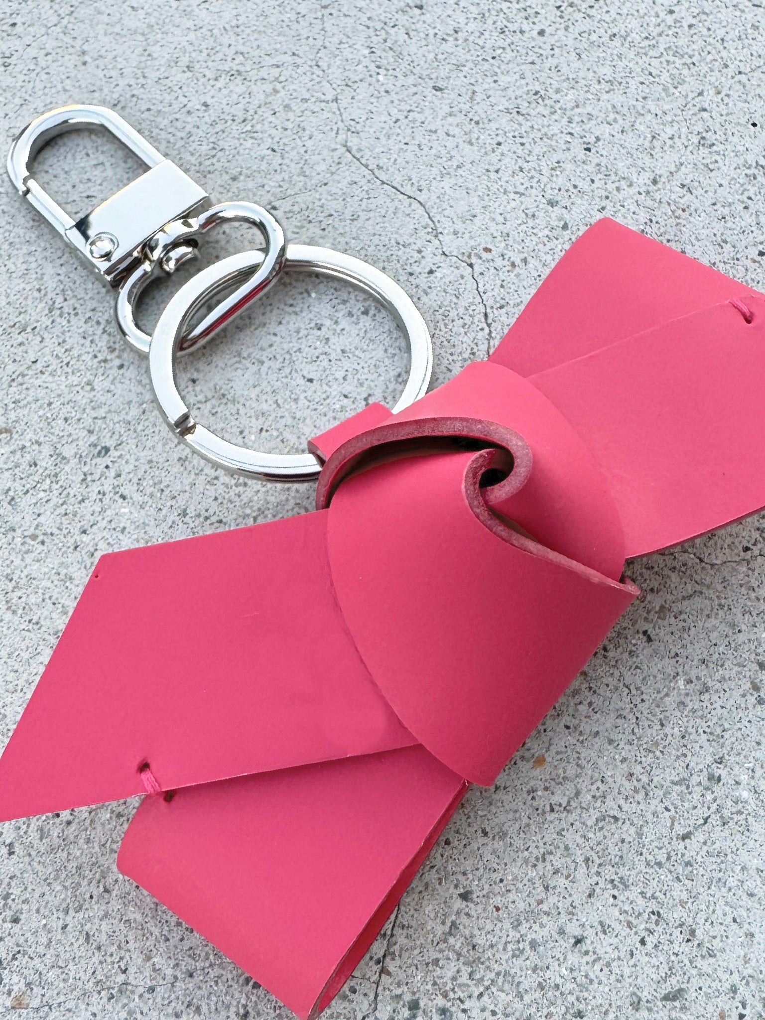 BOW leather keychain - Raspberry Red